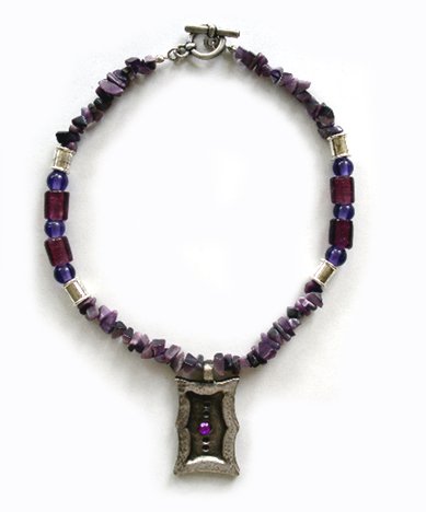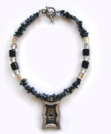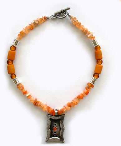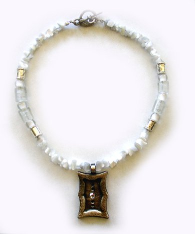 Pewter Necklaces description: Grand round glass beads combined with a fine, pewter beads.