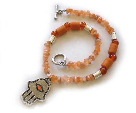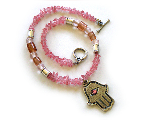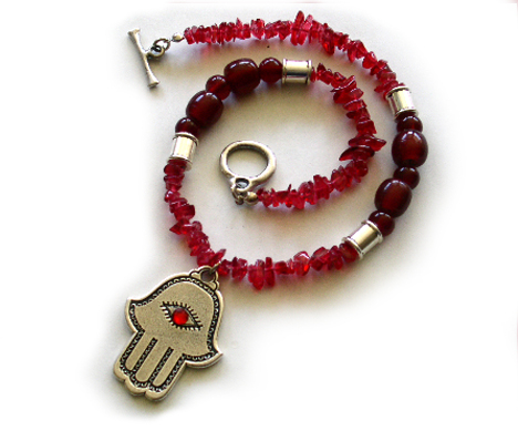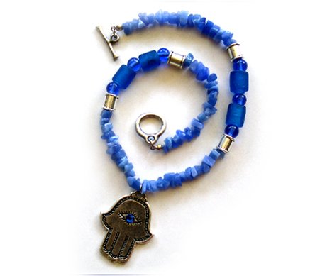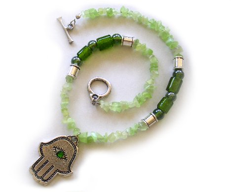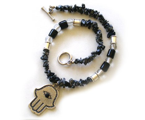 Pewter Necklaces description: Grand round glass beads combined with a fine, pewter beads.